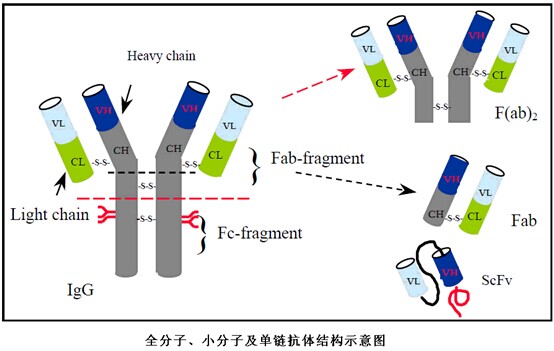 抗體的Fab區域含可變區和恒定區,可以與特異的抗原結合,Fab抗體片段藥物有更好的穿透力。只含有一個Fab臂,分子量在~50kDa。Centocor公司的ReoPro(abciximab)是重組嵌合Fab抗體片段。