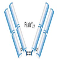 兩個Fab通過二硫鍵連接形成F(ab)2。分子量在~100kDa。2011年FDA批準的Centruroides(Scorpion)Immune?F(ab)2是治療蝎毒的F(ab)2抗體片段。