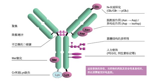 ????抗體是一種結(jié)構(gòu)復(fù)雜的糖蛋白。即使是天然抗體,其結(jié)構(gòu)也是各不相同。抗體類藥物在其生產(chǎn)工藝(培養(yǎng)、分離純化)或貯存過程中容易導(dǎo)致產(chǎn)品的不均一性,所以在藥物研發(fā)以及純化、生產(chǎn)過程中,對(duì)抗體藥物的定量和定性的分析時(shí)非常重要的。