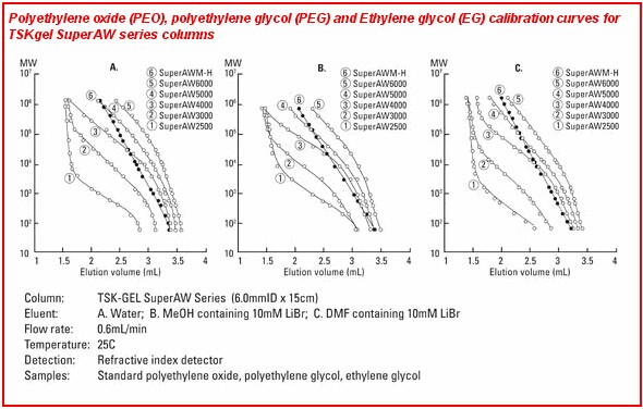 1. TSKgel SuperAW系列色譜柱由親水性球形聚甲基丙烯酸酯顆粒填充。
