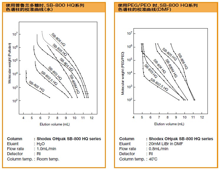 SB-805 HQ色譜柱是聚合物基質的水溶性SEC色譜柱,適用于各種分子量范圍的測定。溶劑可用DMF替換(除SB-802 HQ和SB-807 HQ以外),可分析極性聚合物。SB-804 HQ、SB-805 HQ可用于測定明膠的平均分子量。